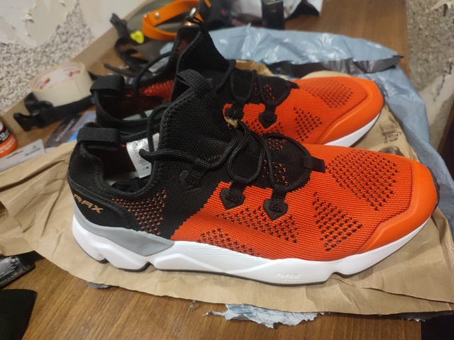 кроссовки дошли до Питера очень быстро, меньше 2 недель. На вид качество отличное, стелька удобная. По советам на свой 43 размер взял 44, есть запас под теплый носок. думаю 43 с тонким носком были бы в притык, сидели бы по плотнее